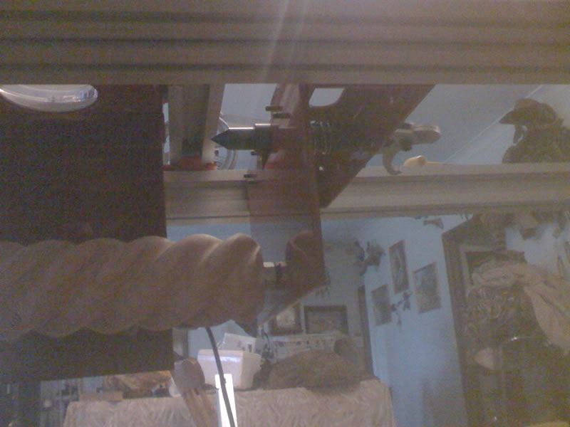 Editors Note: This is one awesome modification! This allows Bill to still use the template follower. The slot in the tailstock bracket allows a taper to still be made. For those looking for the Z axis following capabilities, here it is! Absolutely brilliant!
