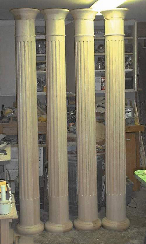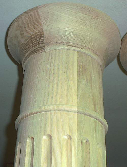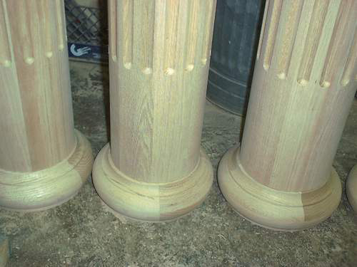 Mike Pung Got the wood Monday, trued and glued. Turned the Cap and Bases Tues. Then turned and fluted yesterday. I finished about 3 AM this morning. The customer came at 8 AM and now I have money to go eat. Each column was 6'6" plus 7" for the cap and base. They are 8" at the bottom for 20 " and then taper to 7" at top. I charged $1000.00 for each column. Just in case you need to know what the market will bear.