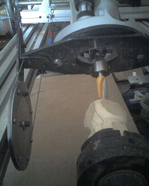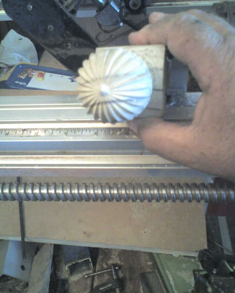 Just a test but it opens up some new ideas the cable is good for making the ball too but once you reach 90 degrees I need to hold the router from falling forward but this is no problem or trouble to do. Always cut from horizontal to vertical to keep tension on the cable and just move the carriage each time like doing a regular multi start spiral.