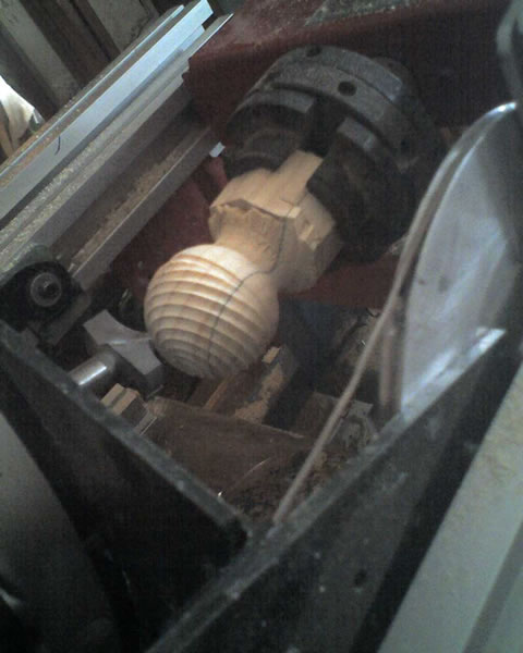 OK, I added a little more to my ball making attachment I found if I add a wheel and a cable I can do spirals on balls. This is a 8 start, 5inch pitch using the tip of a 1-1/2 barley bit. When I get a chance I'll try a rope and barley twist and see what they look like