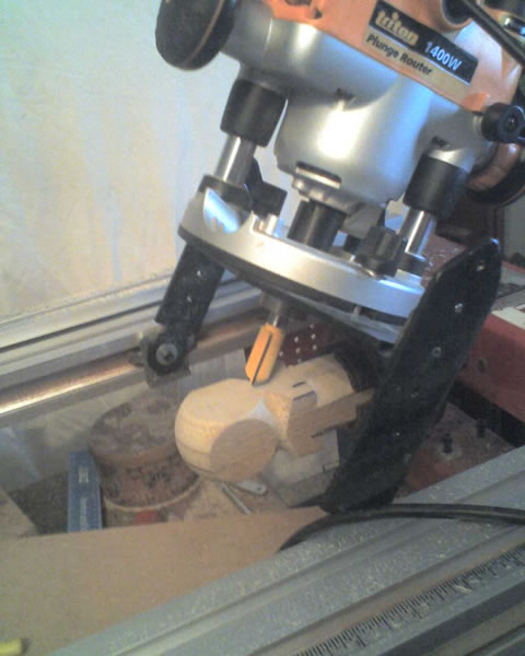 Here is something I was playing with this weekend, a ball making attachment for the legacy. A way of making balls with out having to use a template and cutting from the side. The frame has adjustable height as well as adjustment on the router for balls from very small to the largest dia the legacy can cut. If you turn the router over and mount it from the other side (the triton routers have a quick release for detaching) I suspect I can turn hollows like bowls too.