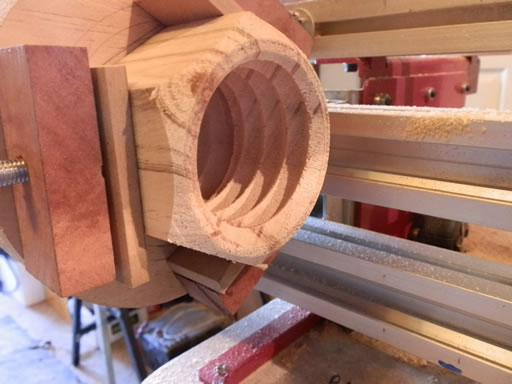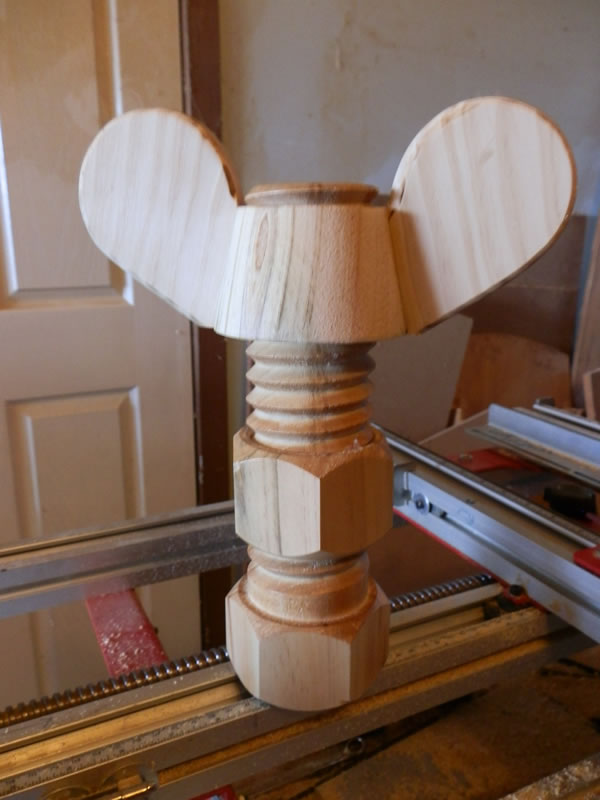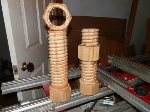 I had a customer wanting one of my large nut and bolts so while I was there I made 2, one for my nephews little girl so just for fun I added a wing nut :). Just made it all from scraps of pine laying around the shop. The screw is 2 3/4" dia thread with 2 TPI.