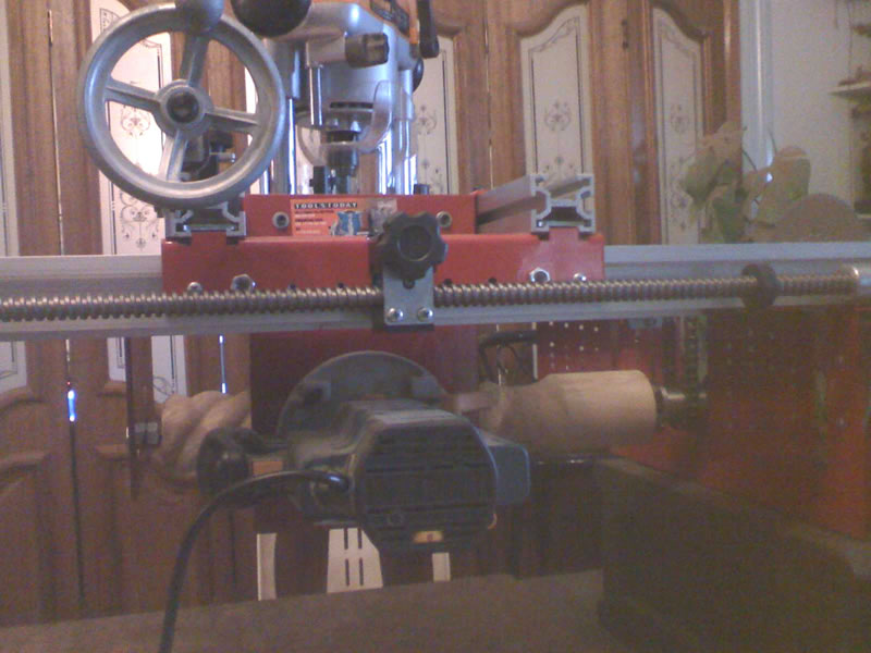 Hi guys here is what I been doing to my model 900 I never did like how you did template work on it. so I did a bit of adding and now I can hopefully use the same router bits as the cnc demos show with a template and be able to do almost the same stuff as they do.(not all of us can afford a new wizz bang computer machine). as a added bonus if I use the double tooth sprocket it should give me the same pitches as the 4X multiplier gears. I haven't tried it yet I just finished it today. I made a similar thing on my revo it is what gave me the idea for the model 900. I'm also making a steady rest so I can remove the tail stock for nice long jobs what do you all think I'm open to any problems you might see with it all.