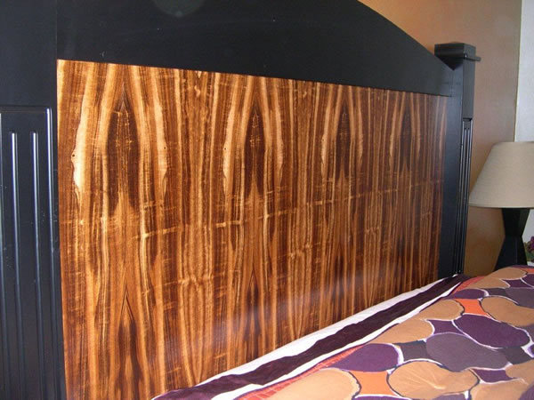 Dave writes: Here's a headboard I made and I'm working on the dresser and the night stands now. The Veneer is call Goncalo Alves or the slang is Snake Wood. I'll have some of it in the dresser also.