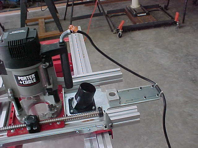 After reading a lot or previous posts, I saw that some people were having trouble keeping their router cords out of the way. Before I ever turned my machine on #900 I saw that the cord could easily be damaged if you are not careful. In fact, a friend of mine told me the other day that he ran over his cord with the router. Luckily there were no injuries. I then mounted mine on the back of the template follower with two ty-wraps. So far this has not interfered with the operation of the router. I probably won't use any templates very often. If I do, I will cut the ty-wraps off and use the templates. After I get through, I will replace them. Am enclosing a picture of my setup. MickeyMac