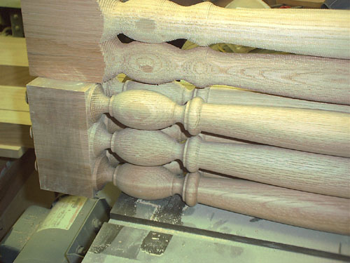 Spindles showing some that are straight off the WoodChuck and some with the detail finished on the lathe.