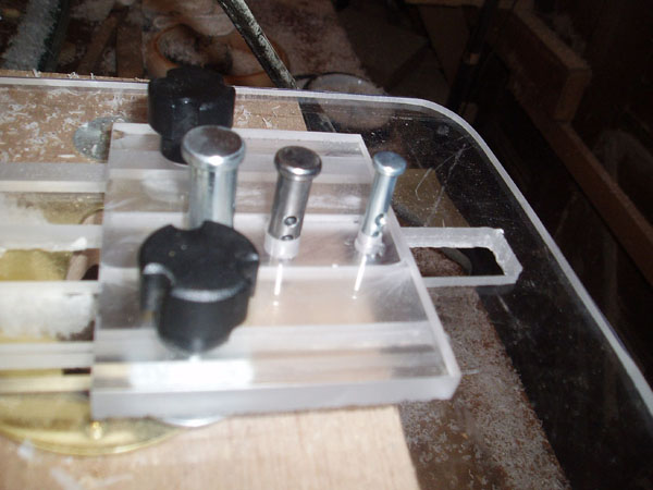 I used 1/2" plexie glass to make the follower, I first made three groves in the follower plate, and then made a sliding bracket that could mount into the groves I just made in the plate. Two 1/4" holes for the turn knobs, and three holes 1/4",3/8",1/2" were added for three different size followers.