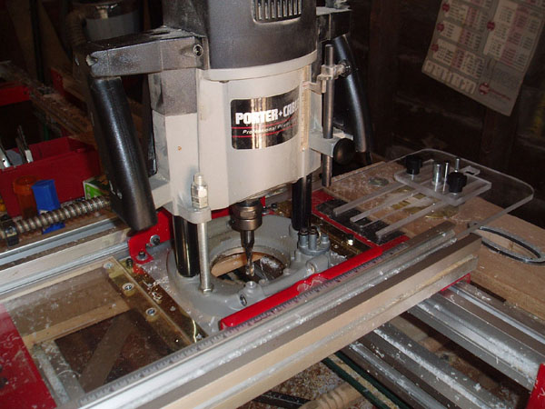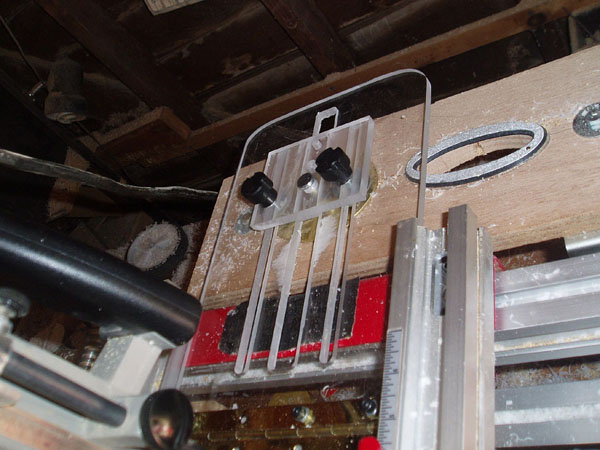 I mounted the plexie glass onto the router carriage by the way of a piano hinge. it allows more strength for the mounting.