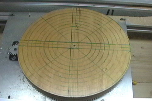 table top, found center. Used a bowl cutting To keep things in place use a piece of sticky