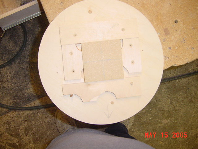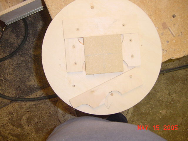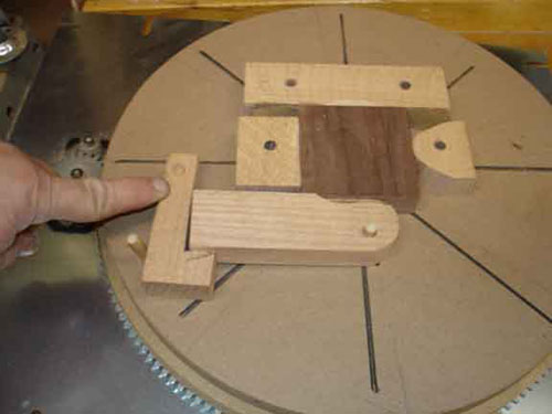 dowel. To make the rosette hold down table I screwed blocks on three sides