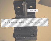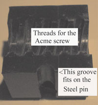 The first picture is both parts of the split nut - you can see the chamfered holes on the back (where the flat head Philips screws mount it to the sled) behind the steel pin. The two holes on the right are where the aluminum fork (that the knob slides on) mounts on. The single hole on the left is where the locking knob screws in. Note that the aluminum piece on the bottom of the picture was just to provide support while taking the picture.